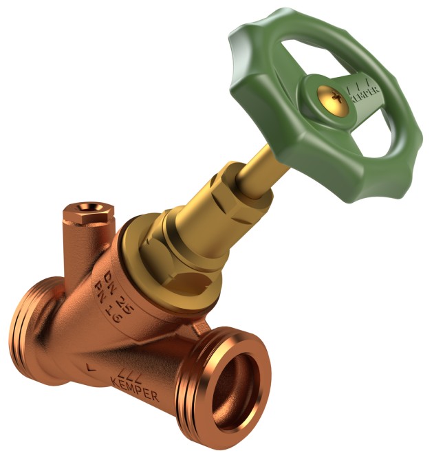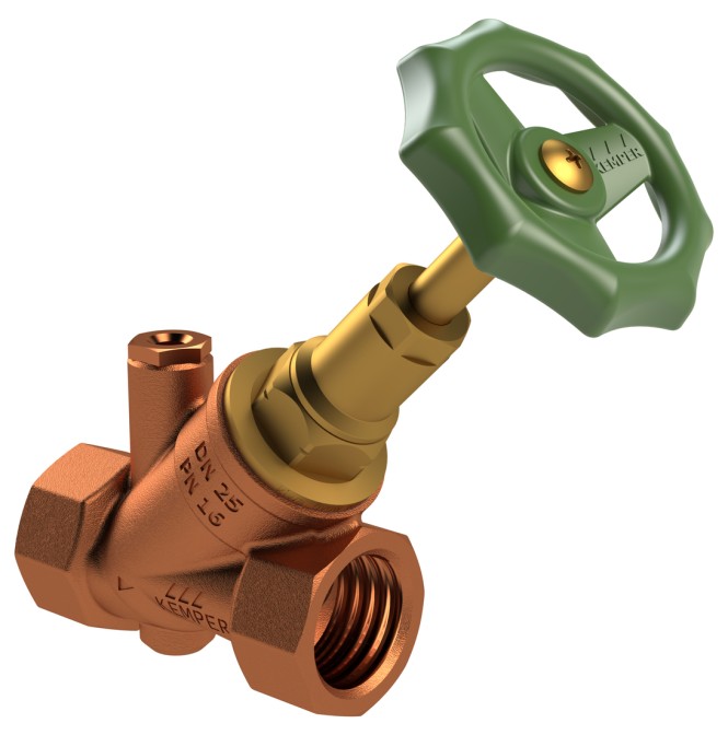 STANDARD Freistrom-Absperrventile sind KEMPER Rotgussventile mit Messingoberteil