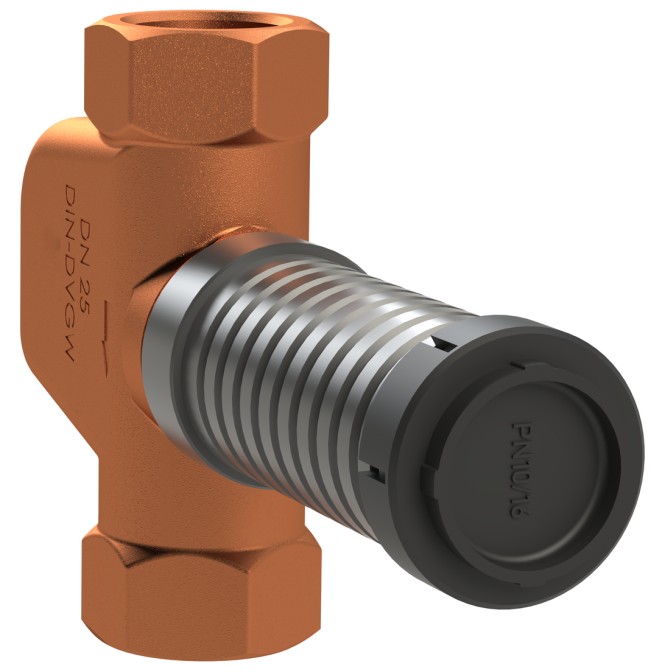 - mediumberührte Metallteile aus entzinkungsfreiem und korrosionsbeständigem Rotguss, beständig gegen aggressives Wasser