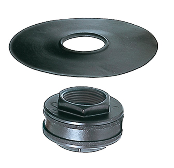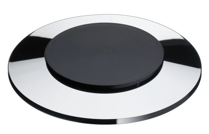 bestehend aus schwarzer Kunststoff-Blindkappe und verchromter Abdeckrosette