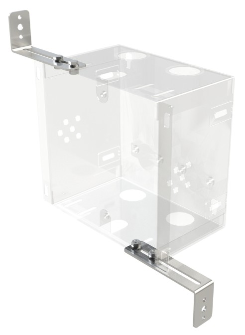 komplett mit Schallentkoppler und seitlichen Halteschrauben zur Register-, Montageschienen- oder Wandbefestigung