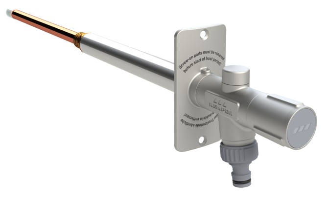 The FROSTI® frost-proof outdoor tap is permanently installed and automatically drains itself every time it is shut off. This means that no residual water remains in the area that is at risk from frost. Water damage from a frozen outdoor tap is a thing of the past. The tap can therefore be used all year round and it is no longer necessary to drain it manually.