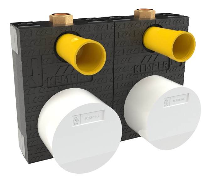 - consisting of two flush-mounted valves and water meter housings with plaster work protectors